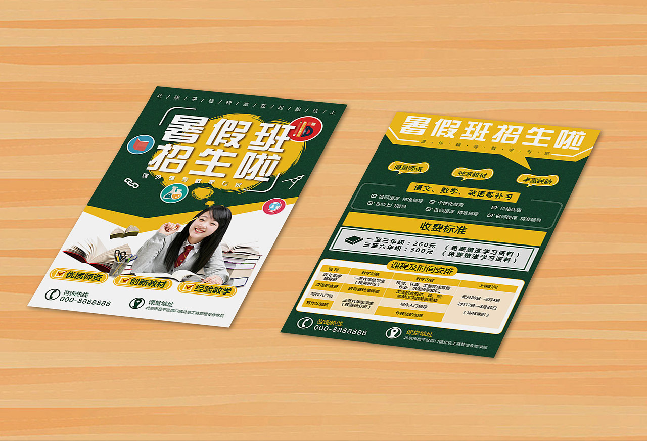 暑假寒假秋季春季培訓班招生宣傳彩頁設計印刷