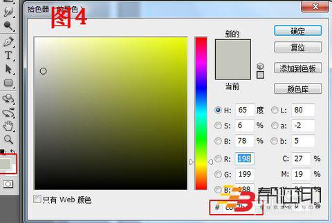 4、 設置前景色顏色為灰色(C6c7bc),如圖4所示。
